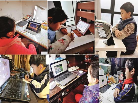 2月10日,武汉市水果湖二小的学生通过直播云系统上课。当日起,武汉中小学(中职学校)按照教学计划,开展在线教学。摄影/湖北日报 田悦