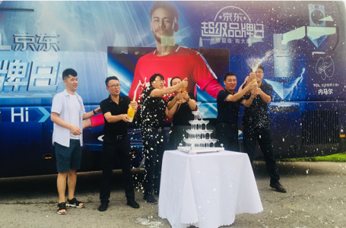 (TCL与京东高管开香槟庆祝十年合作)