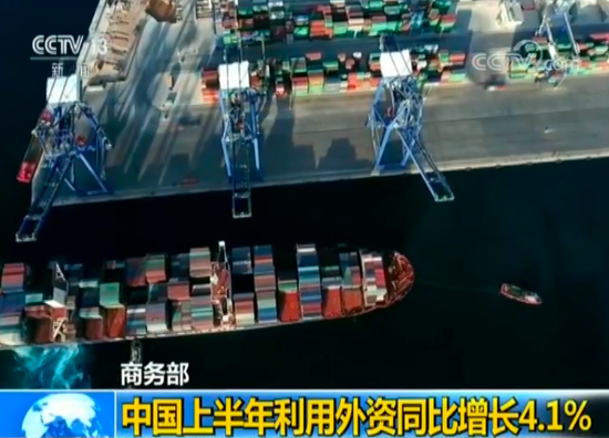 中国上半年利用外资同比增长4.1%