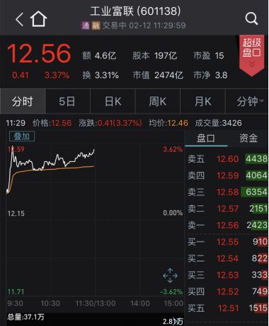 除了小米、美团,A股被纳入MSCI的几家上市公司则表现较好,工业富联高开超过1%,涨至3.5%左右,随后震荡,截至上午收盘,报收12.56元,涨了3.37%。