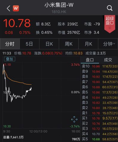 今天上午港股开盘,小米、美团成功“入摩”后,股价双双高开超2%,随后小米集团一度涨至3.5%左右,但随后大幅下挫,截至发稿,小米集团报10.78港元,翻红微涨0.75%。