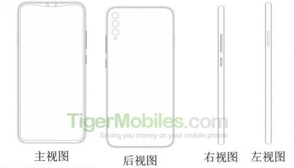 另一则专利中的手机为直板造型,额头像是圆弧状的异形切割屏,中间露出两颗前摄开孔,背部为竖排三摄。
