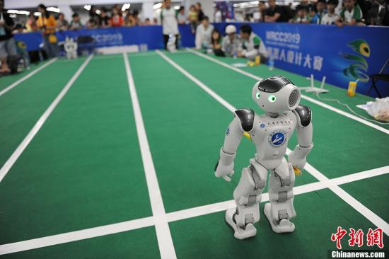 8月23日,2019年世界机器人大会上的机器人“奥运会”比赛。中新网记者 李骏 摄
