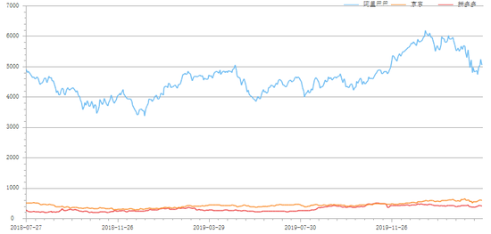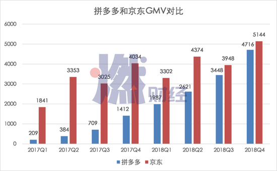 拼多多和京东GMV对比(京东从2019年开始不再公布GMV数据)