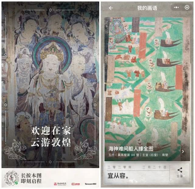 在信息“必需品”之外,腾讯没有忽略提供“软性”信息,为大众提供有温度的情绪支援。受疫情影响,莫高窟等石窟从除夕起暂停开放,腾讯联合敦煌研究院2月中旬推出“云游敦煌”小程序抢险体验版,让用户足不出户欣赏敦煌文化之美,上线十天已有超过100万用户体验,被认为是文博机构打造“数字文保”的标杆案例。