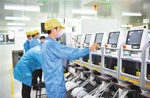 广州开发区筹划了120个“新基建”项目。图为高新兴科技集团生产车间。 陈耀炫摄(中经视觉)