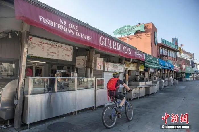 资料图:当地时间4月12日,美国旧金山渔人码头的商店均已关闭。中新社记者 刘关关 摄