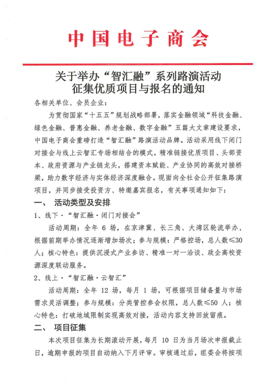 关于举办“智汇融”系列路演活动征集优质项