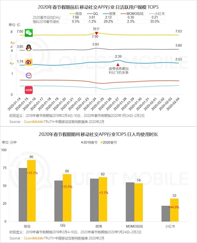 中国网科技2月12日讯 疫情叠加春节,超长假期让移动互联网行业的时长格局悄然生变。QuestMobile数据显示,相比去年春节,2020年春节期间(1.24-2.2)短视频的时长占比超过手机游戏,快手、抖音因合作央视和地方卫视春晚,用户增量均超过4000万,其中快手春节假期平均日活跃用户规模上涨高达40%。...