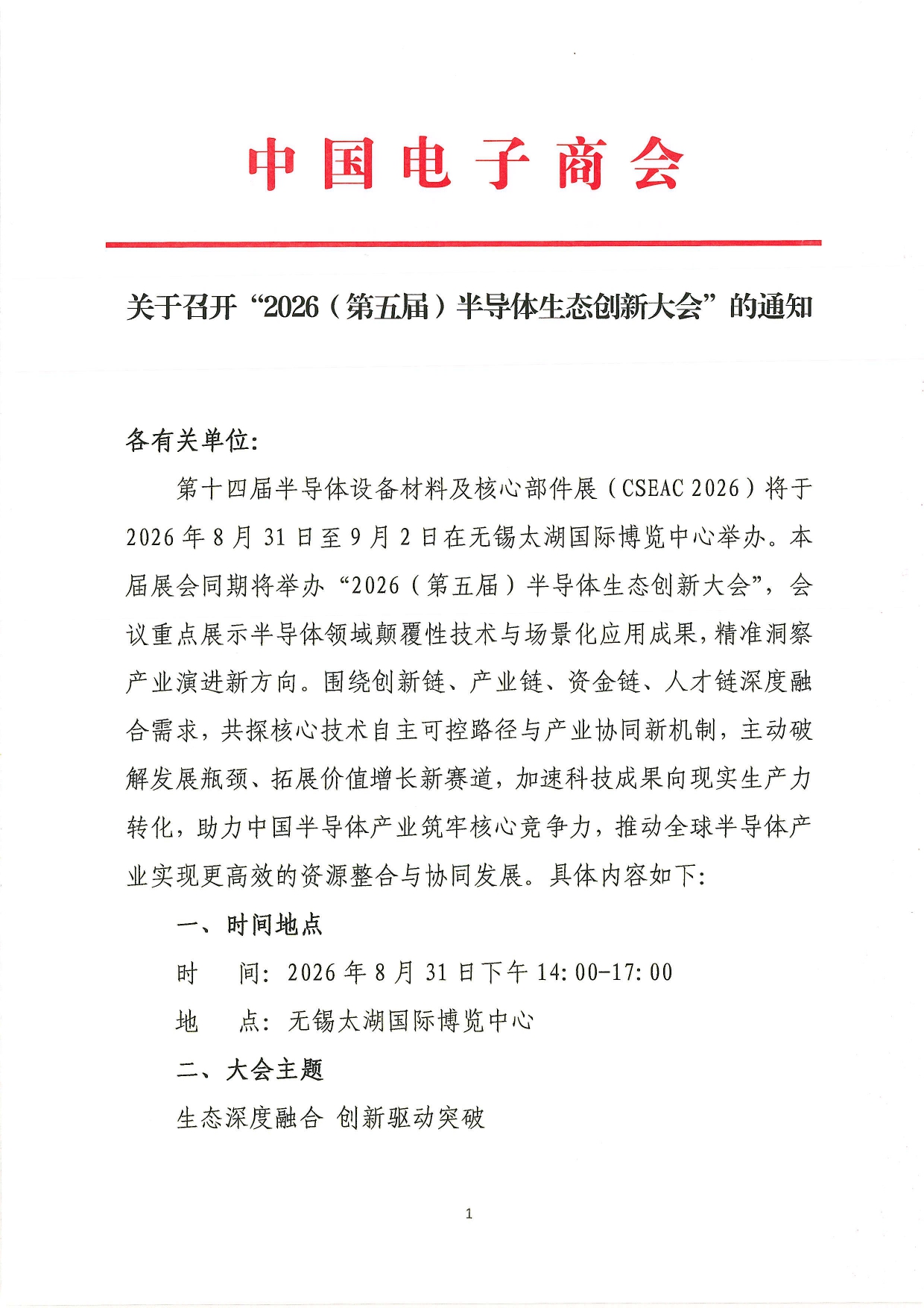 关于召开“2026(第五届)半导体生态创新大会”的通知